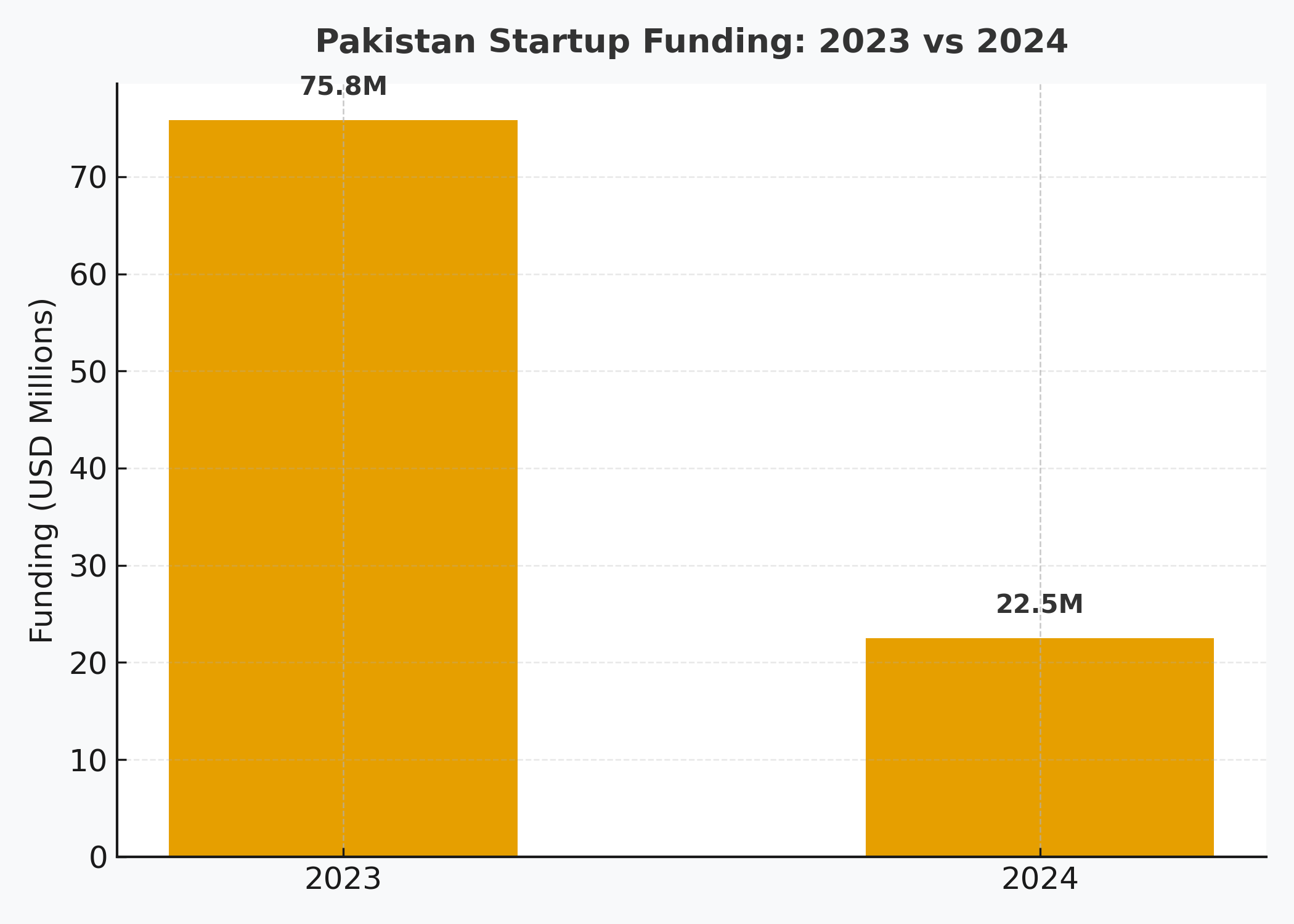 According to i2i Ventures and Invest2Innovate’s 2024 report, startup funding in Pakistan fell by 87% between 2021 and 2024. The reasons are both global and local: